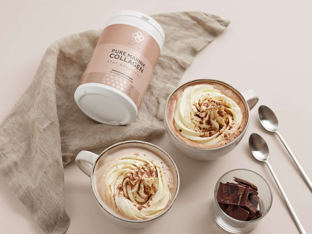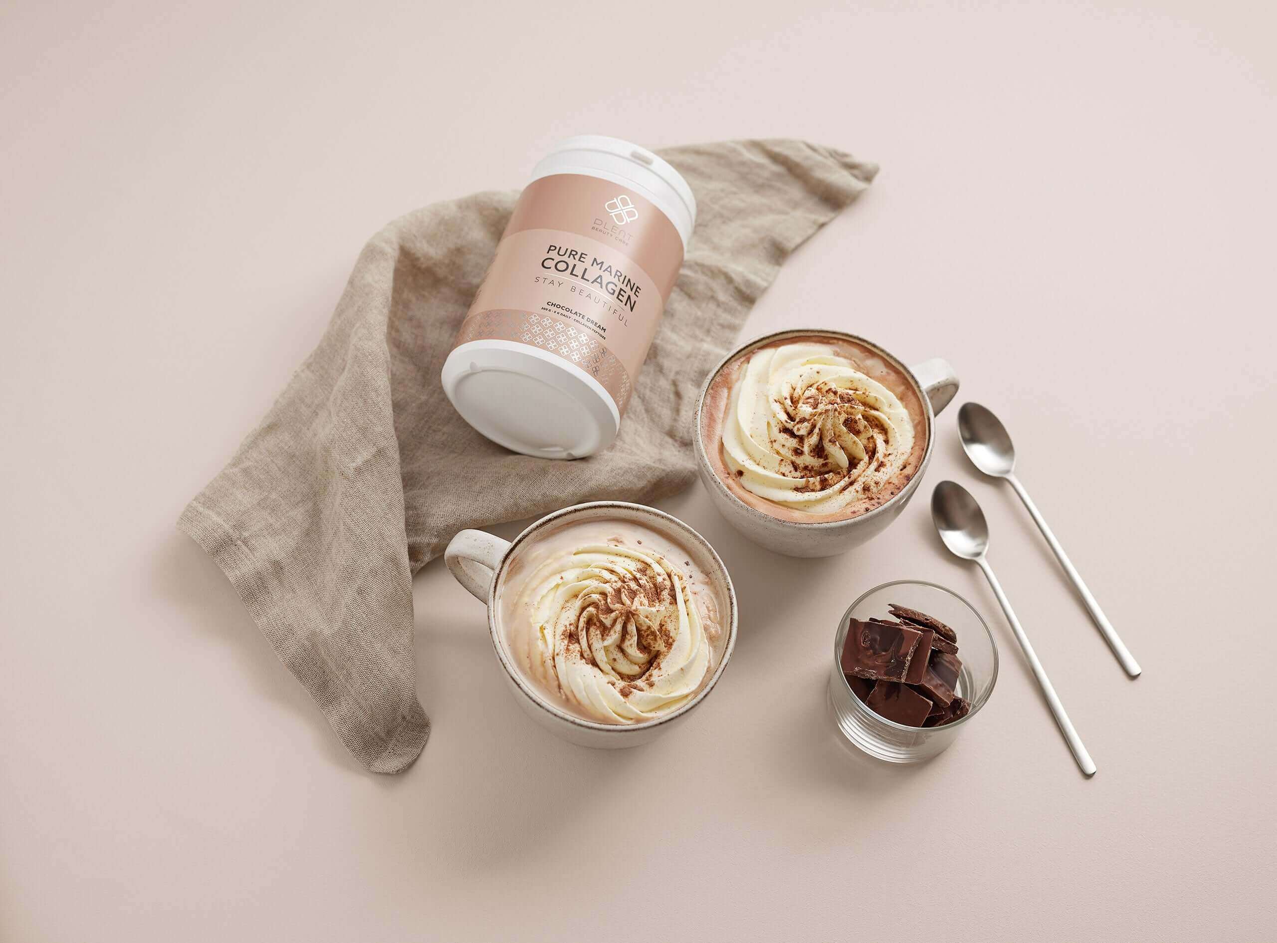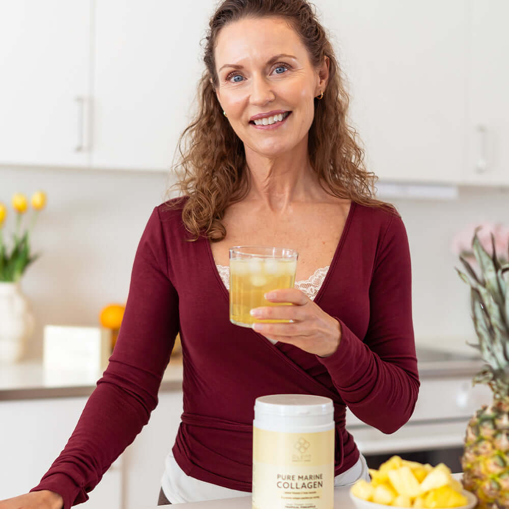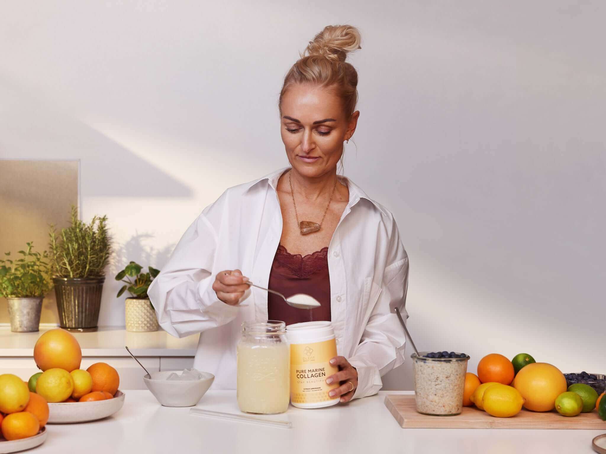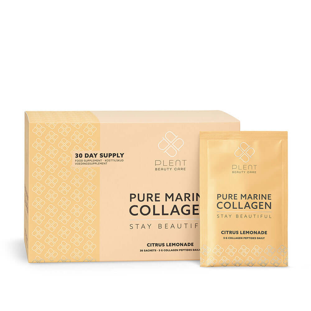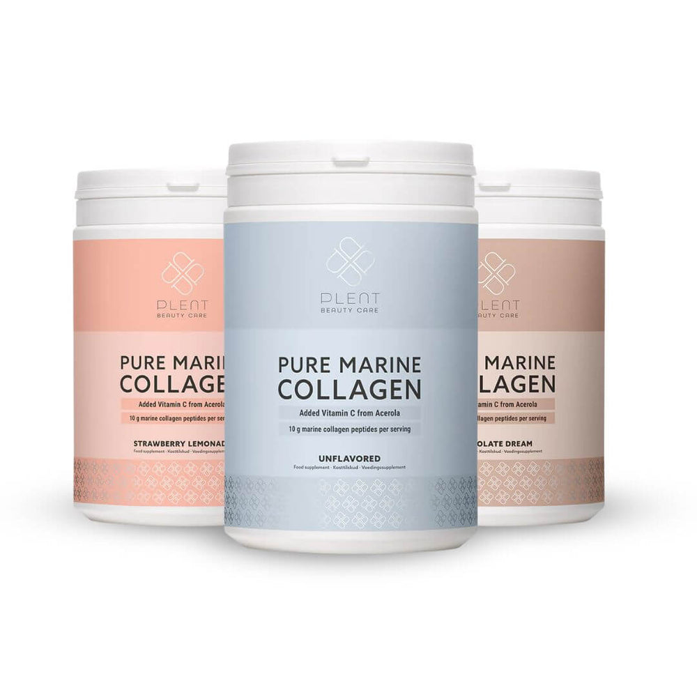 De Pure Marine Collagen-collectie bevat duurzaam gewonnen viscollageen, verrijkt met vitamine C uit acerola. Dit dagelijkse supplement ondersteunt de normale collageenvorming en helpt bij het behoud van een gezonde, stralende huid.