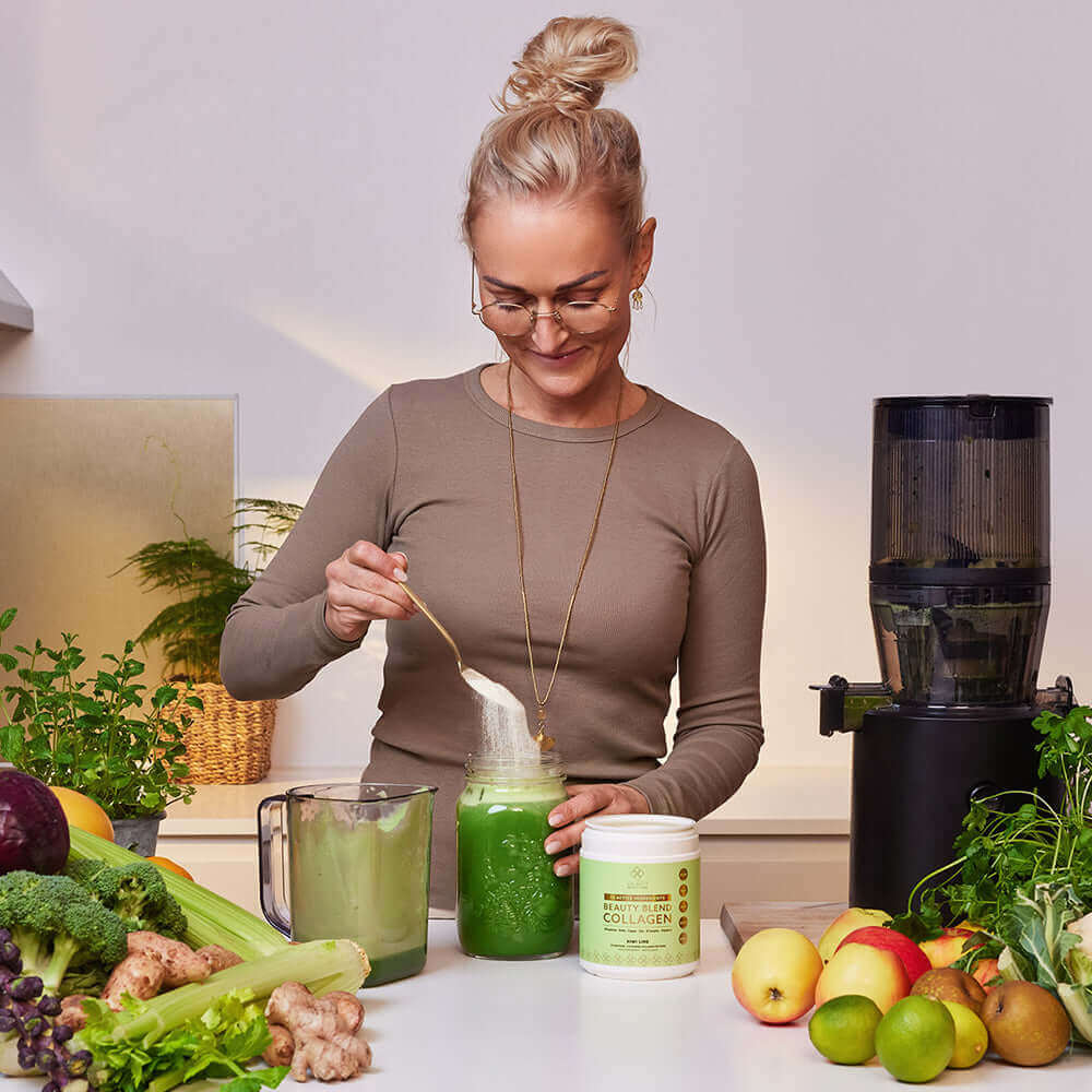 Onze Beauty Blend Collageen combineert Naticol® type 1 gehydrolyseerde collageenpeptiden met 12 vitaminen en mineralen. Het resultaat is een harmonieuze anti-aging mix, die zichtbare tekenen van het ouder worden vermindert. -