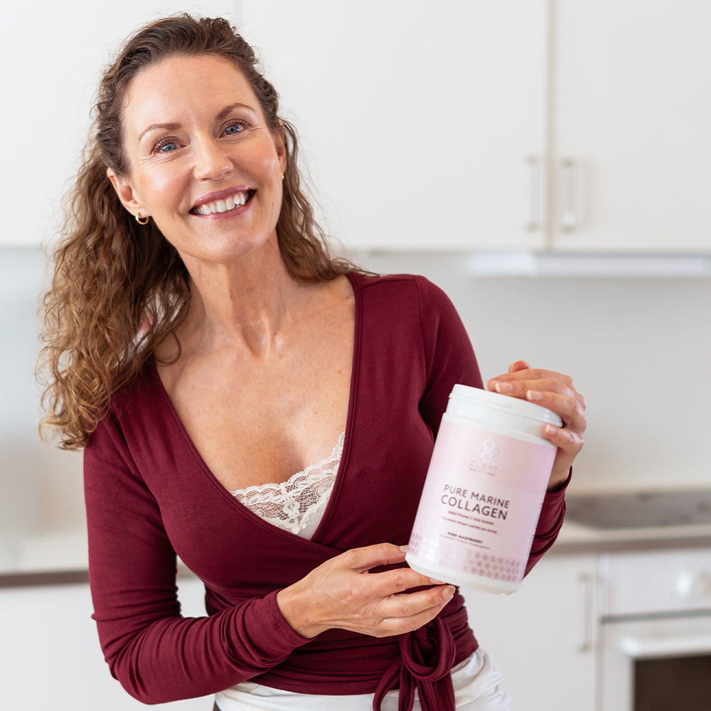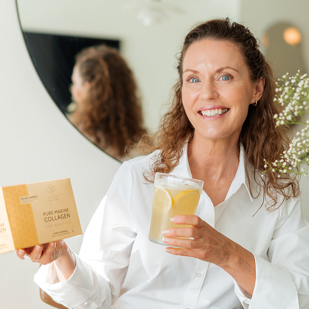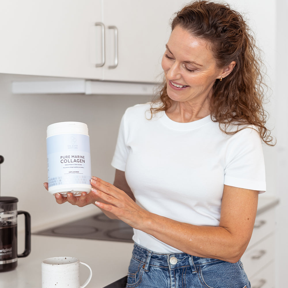 De Pure Marine Collagen-collectie bevat duurzaam gewonnen viscollageen, verrijkt met vitamine C uit acerola. Dit dagelijkse supplement ondersteunt de normale collageenvorming en helpt bij het behoud van een gezonde, stralende huid.