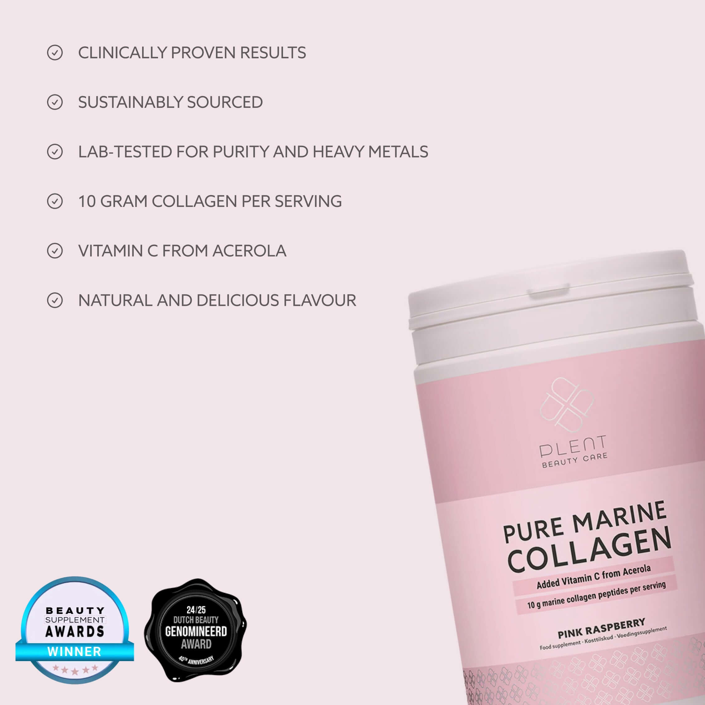 Ontdek PLENT Pure Marine Collagen. Deze eenvoudige maar krachtige formule combineert hoogwaardige Naticol® type 1 gehydrolyseerde viscollageenpeptiden met natuurlijke vitamine C uit acerola. Speciaal ontwikkeld voor iedereen die de huid van binnenuit wil verzorgen.