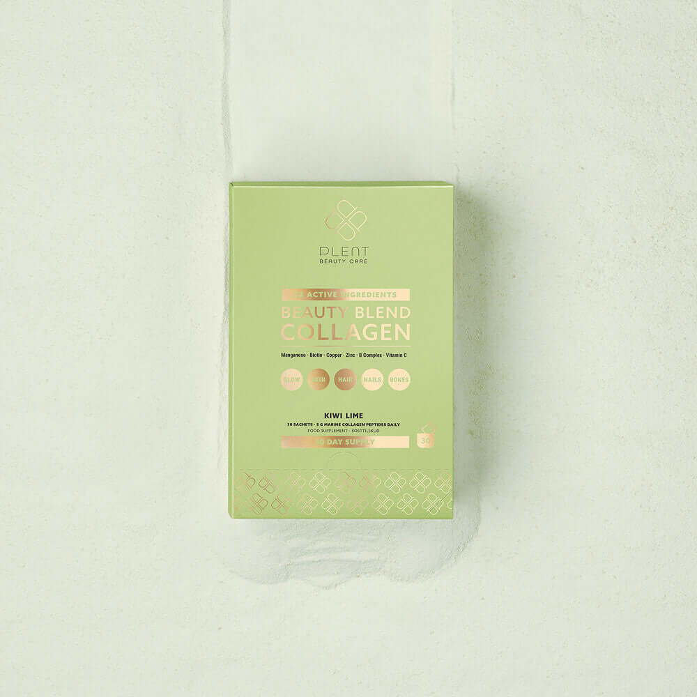 Ontdek onze PLENT Beauty Blend Collagen. Deze zorgvuldig samengestelde formule combineert hoogwaardige Naticol® type 1 gehydrolyseerde viscollageenpeptiden met een mix van 12 vitaminen en mineralen, waaronder vitamine C, biotine en zink – speciaal ontwikkeld voor iedereen die van binnenuit wil bijdragen aan de verzorging van huid, haar en nagels.