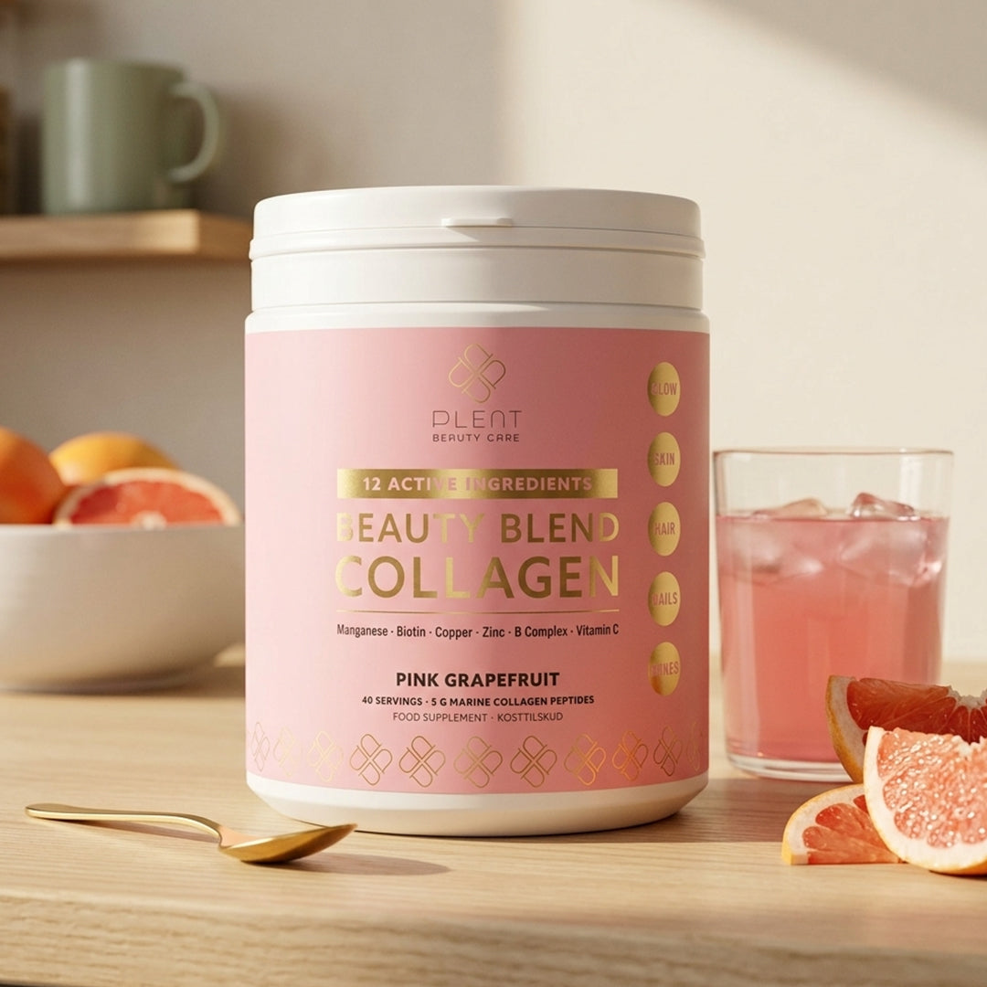Ontdek onze PLENT Beauty Blend Collagen. Deze zorgvuldig samengestelde formule combineert hoogwaardig Naticol® type 1 gehydrolyseerde viscollageenpeptiden met een mix van 12 vitaminen en mineralen, waaronder vitamine C, biotine en zink – speciaal ontwikkeld voor iedereen die wil bijdragen aan de verzorging van huid, haar en nagels van binnenuit.